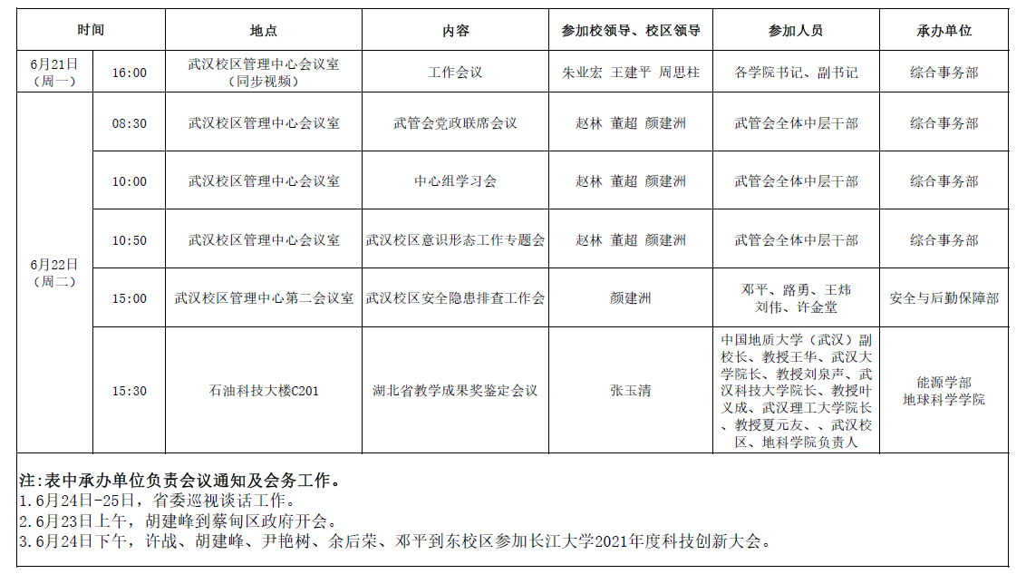 2020-2021学年第二学期第17周校区主要工作及活动安排表