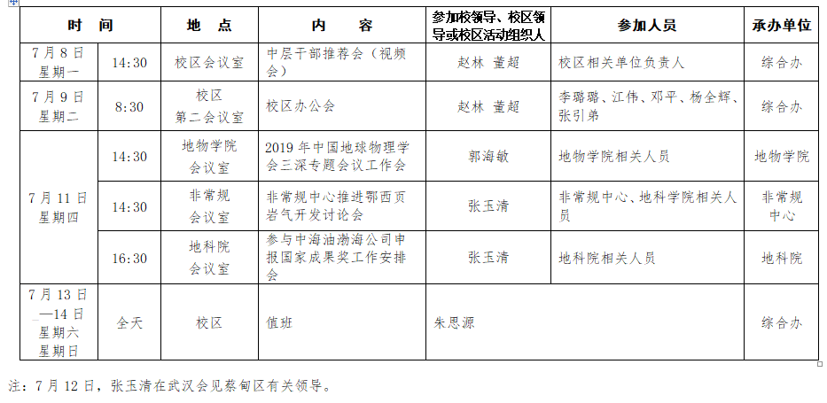 2018-2019学年第二学期第19周校区主要工作及活动安排表