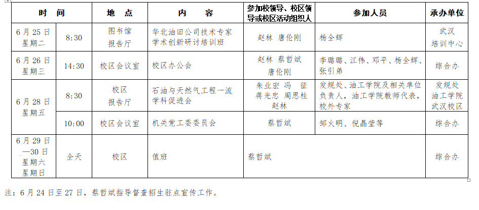 2018-2019学年第二学期第17周校区主要工作及活动安排表