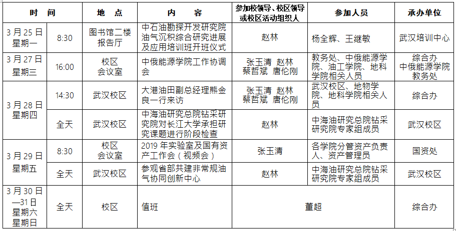 2018-2019学年第二学期第4周校区主要工作及活动安排表
