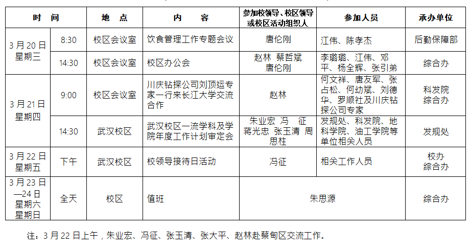 2018-2019学年第二学期第3周校区主要工作及活动安排表