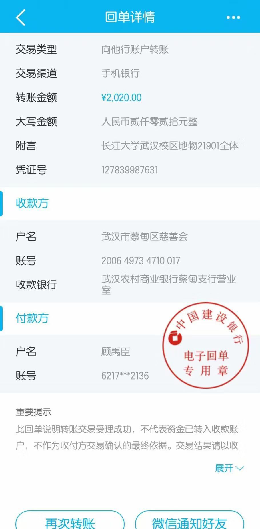 截止目前,地物21901班共筹集善款2020元,并将筹集到的善款全部捐献给了武汉市蔡甸区慈善会,其中地物21901班班长顾禹臣将自己积攒的1172元全部捐献出来抗击疫情。