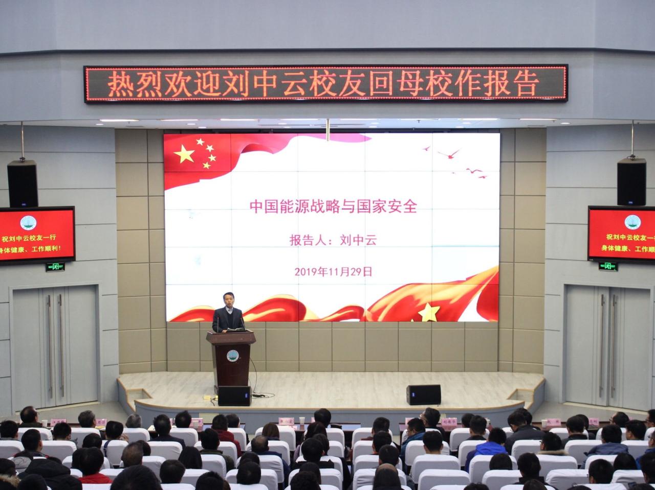 (通讯员 万文婷 学生记者 房元龙/文 张佳睿/摄)11月29日上午,mk体育79级校友,中国石油化工集团公司副总经理刘中云回母校,带来题为“中国能源战略与国家安全”的报告。校党委书记朱业宏主持报告会,党委副书记、纪委书记蒋光忠,校办、mk体育管委会、资环学院、地物学院、地科学院、油工学院相关负责人及全体中层干部、师生代表聆听报告。