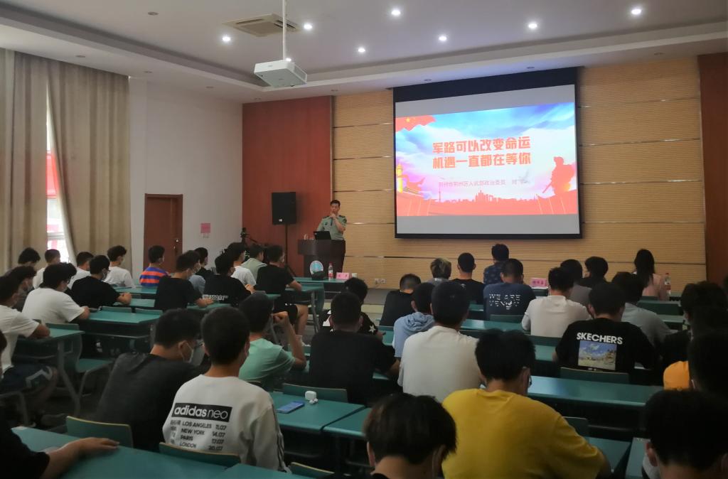 会上,刘辛首先从“参军入伍是改变人生的最快通道”这一话题切入,对同学们最为关心的退伍复学助学、军旅长远发展、经济补助等方面政策进行了详细的解释说明,随后通过举例向同学们介绍了参军入伍如何能够实现经济独立、绽放阳刚之美、奠定人生事业基石等,同学们积极回应,会场气氛十分热烈。