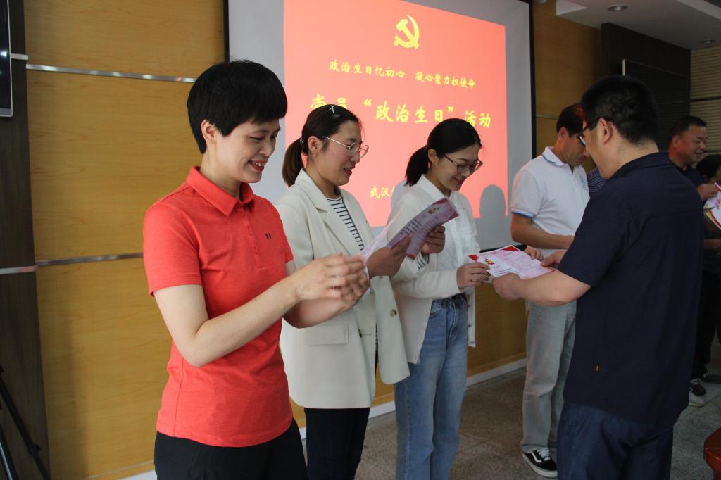 活动伊始,支部为上半年入党的党员集体过“政治生日”,董超和武管会副校长颜建洲分别为党员送上了生日贺卡并合影留念;教学管理部部长胡建峰分享了30年前入党的经历和初心,回忆满满,字字真切,深深感染了在场的党员。