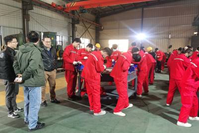 校区领导一行在实训单位经理姚喜的带领下探望了第一批接受实训的师生,查看了实习环境,并交流了今后可拓展的合作空间。此次参与工程实训的学生班级为油工21901班~油工21906班、油工(卓越)20901班和油工(中俄)20901班,当天下午的带队教师为吴惠梅博士。