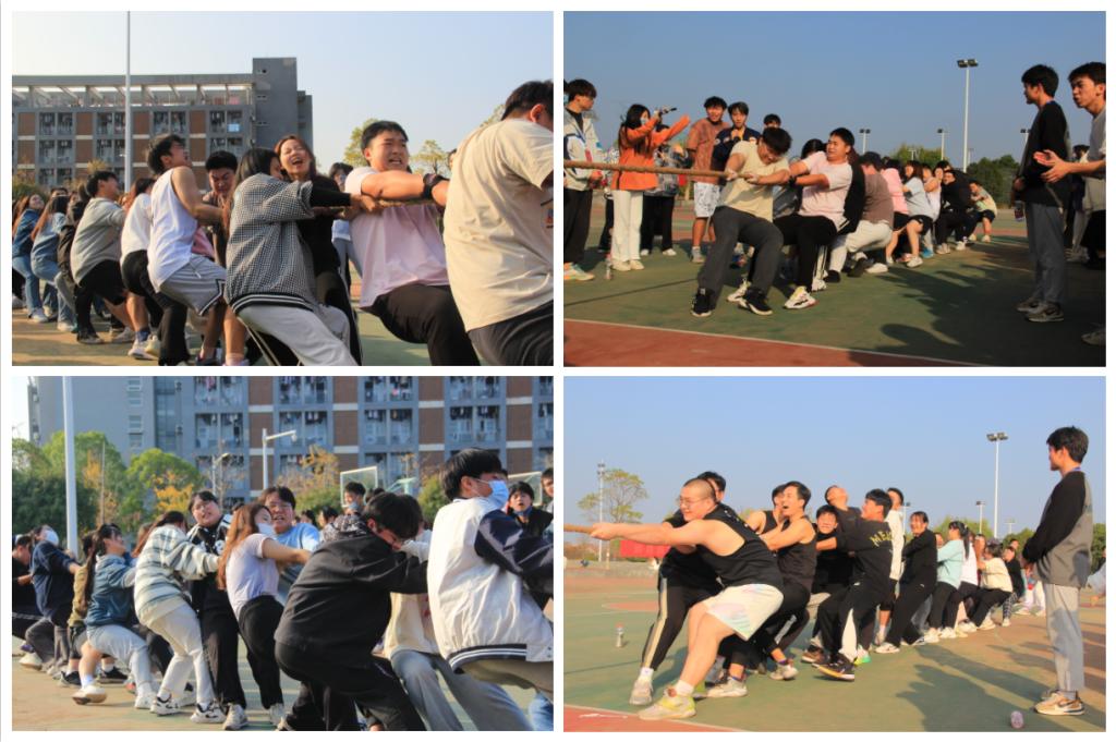 赛场上:参加100米、400米、800米等径赛项目的同学一个个如利箭般飞出,激烈的角逐引得观众们兴奋不已,加油声此起彼伏;参加跳高、跳远项目的同学奋力助跑、身轻如燕;参加10人跳绳、拔河、混合接力赛等创编项目的同学分工明确、齐心协力、团队凝聚力“爆棚”。