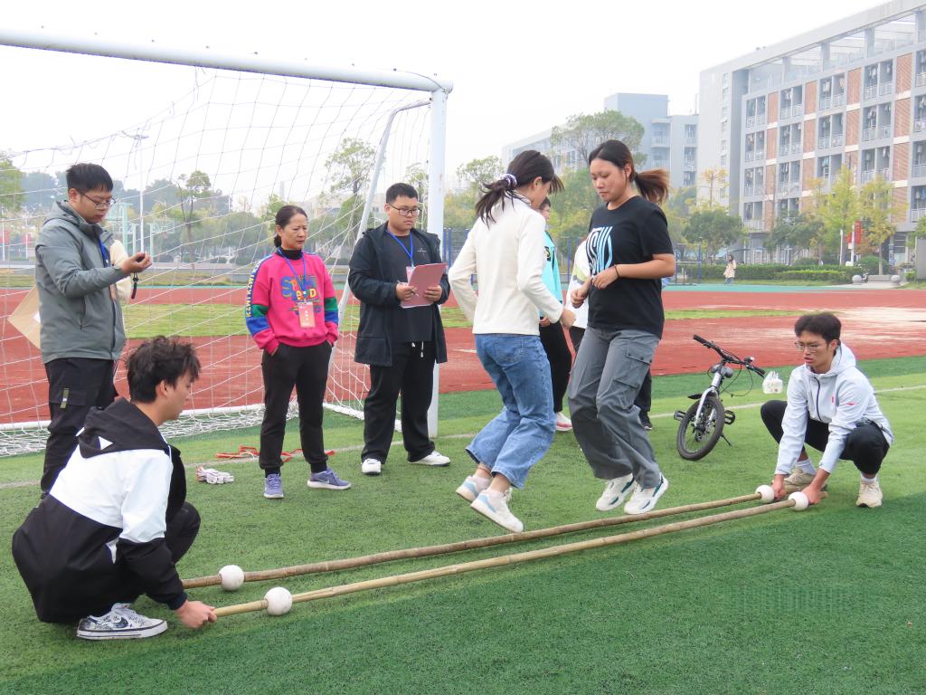 本届运动会精心设置的多项创编项目,将趣味性与团队协作深度融合,成为赛场上点燃激情的“活力引擎”。时代列车、夹杆跳、10人奔跑、10人跳绳、10人袋鼠跳接力、20人拔河这些创编项目不仅让运动员们在竞技中收获快乐,更让学子们在加油助威中凝聚情感,成为本届运动会难忘的“热血记忆”。