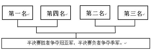 4、第一轮循环赛,积分前四名出线进入半决赛。半决赛第一名与第四名、第二名与第三名争夺决赛资格。
