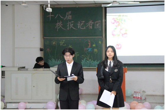 下午3点,记者节活动正式开始,由侯旭跃和朱蕾主持。在众人的期待中,策划部部长荣悦带领策划部小记者为大家演唱了一首《套马杆》,让大家在寒冷的秋意中感受到了暖暖的热情,将大家的气氛都调动了起来。随后杨小雨笛声独奏《沧海一声笑》更是轰动全场。余音袅袅的演奏之后,来到了记者节的重点活动——模拟采访,老记者们都化身成学识渊博的大拿,等待着小记者们的采访。采访中,老记者不断提醒小记者们的用词,给了各位小记者诸多的启发,大家都受益匪浅。钟嘉杰用书法写了“校报记者”,为记者节庆贺;李思璇的演唱惊艳众人,将气氛再次拉到高潮。随之而来的就是激动人心的中华小曲库游戏环节,大家踊跃参与。精彩的游戏过后,蒙捷对校报《说爱你》,李铭皓给校报送上自己的祝福——《刻在我心底的名字》,策划部女生《我是一颗跳跳糖》的群舞活泼又可爱,李柏儒和张佳禾的合唱清澈而又深情。游戏环节同样精彩,抢数字的激烈争斗,大家相互“指认”;萝卜蹲的有趣欢乐,大家一站到底;五毛一块的互相拉扯,大家胜负欲爆棚。最后,在击鼓传花的惊心动魄中,新闻部全体记者为记者节送上了祝福——《稻香》。