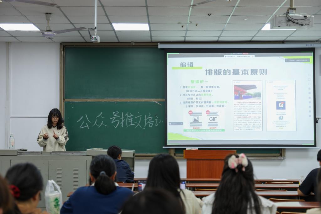 (学生记者 杨尚衡/文 吕岑罡/摄)为了提升校区专兼职宣传队伍关于公众号的编辑水平,10月18日晚,在教学楼A105室开展了公众号推文专题培训。