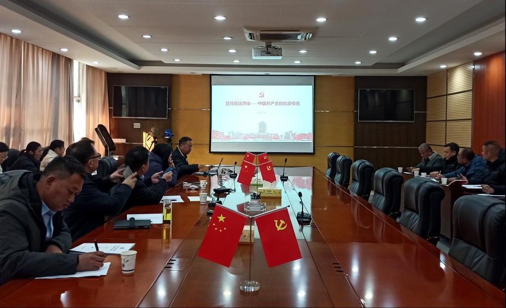 会上,校区党工委书记崔青山带领全体党员重温入党誓词、交纳党费、诵读《中国共产党章程》第一章,学习了中共中央举行纪念毛泽东同志诞辰130周年座谈会上习近平总书记重要讲话、《中国共产党纪律处分条例》《关于深入推进党员干部下基层察民情解民忧暖民心实践活动的意见》以及《永远奔向前方——mk体育2024年新年献词》等内容。武管会主任孙涛以《坚持底线思维——中国共产党的优良传统》为题讲授微党课,告诫党员干部要时刻树立底线思维,增强忧患意识,做到居安思危,未雨绸缪,并科学运用马克思主义基本原理和方法论,有效防范和化解日常工作中遇到的突发事件。